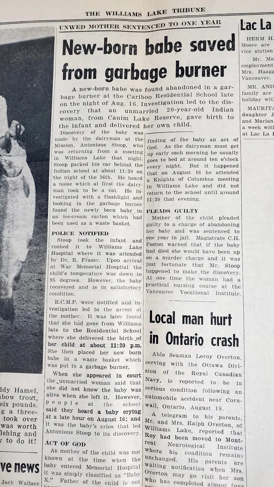 As reported in the Williams Lake Tribune, the mother went to jail because of the child abandonment: